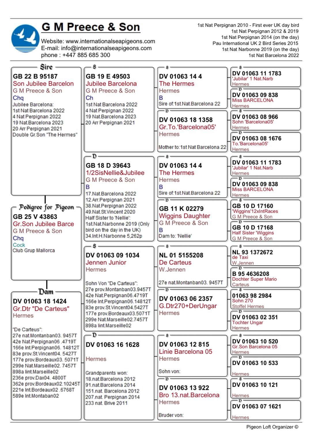- GB 19 E 49503 “Jubilee Barcelona” – 1º Nat. Barcelona 2022, 4º Nat. Perpignan 2022.